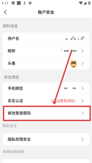 在账户安全页面,点击【修改登录密码】选项,就能进入密码修改页面了。