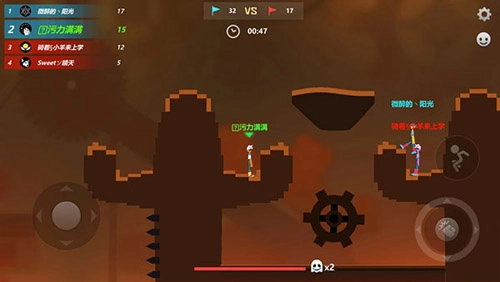 激斗火柴人体验服旧版本是一款火柴人动作格斗游戏,玩家将进入激烈的战场,感受与其他玩家的热血对战。火柴人的死亡方式多种多样,既能被地图挤压出局,也可能坠入深不可测的深渊,随着游玩的深入,你会解锁各类新奇的死亡方式。战局瞬息万变,玩家需要灵活使用各种武器,同时留意地形,借助地形优势来赢得胜利。