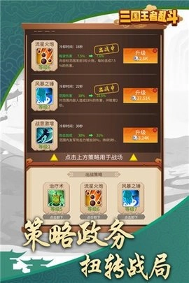 玩家能够自主招募刘备、关羽、张飞、曹操、马超、孙策等各类三国名将,每个武将都具备独特的技能与属性,玩家可依据自身需求搭配不同阵容。随着等级提升,你会获得解锁武将新能力的机会,越来越多强力武将将在战场上发挥关键作用。