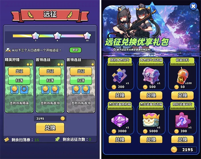 参与挑战远征活动,能够获取装备、远征金币以及装备强化图纸;此外,远征金币还可用于兑换角色碎片、杰出装备等各类材料。