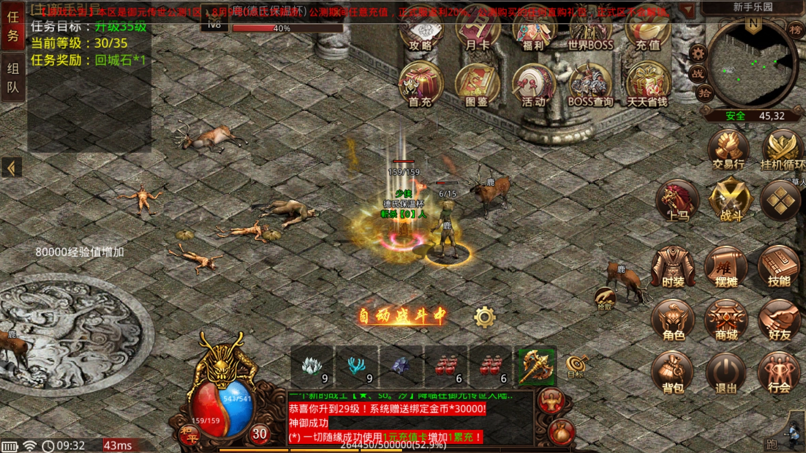 登录就送高等级体验,做完主线任务和王城诏令就能轻松升到40级,挑战精英怪还能慢慢收集稀有装备套装。