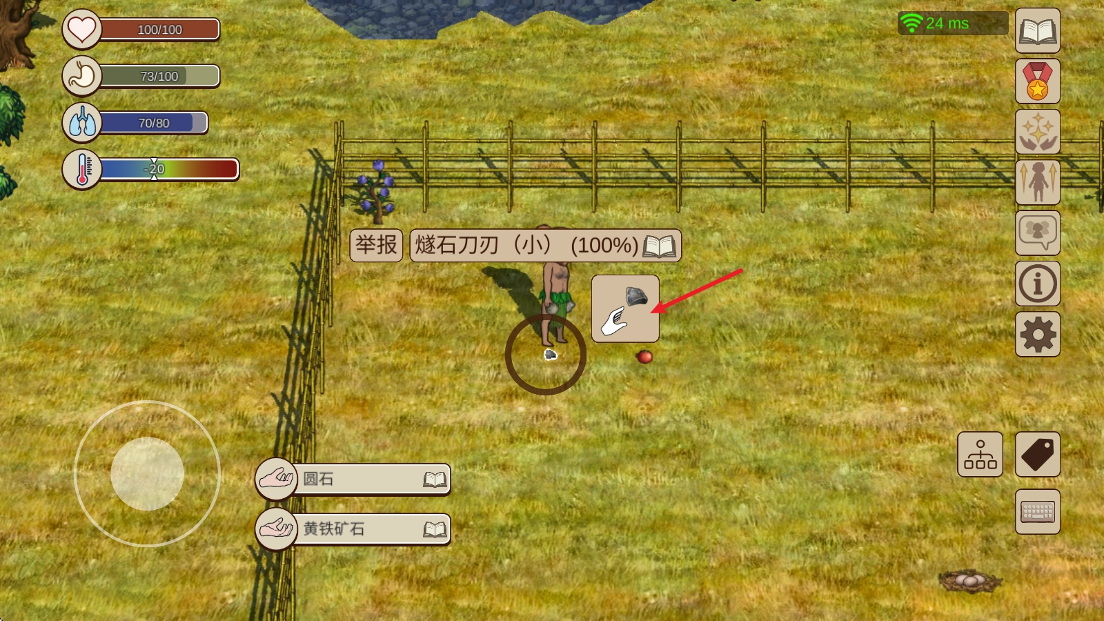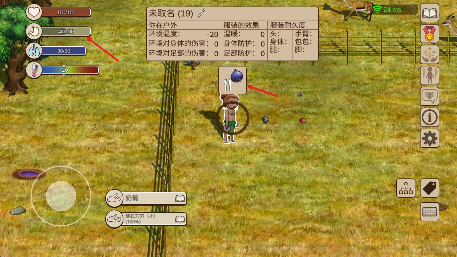 点击人物即可食用手中的食物,提升自己的饥饿值。