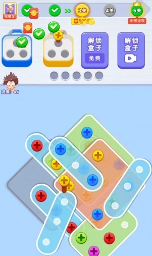 把所有螺丝都顺利消除就能通关,领取系统准备的丰厚奖励。