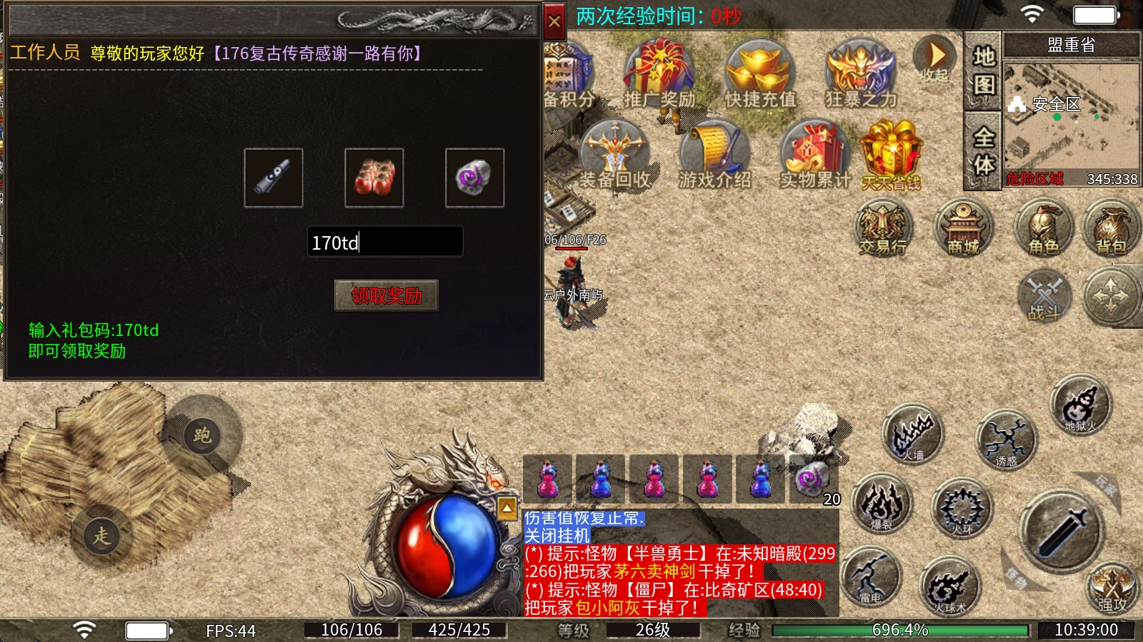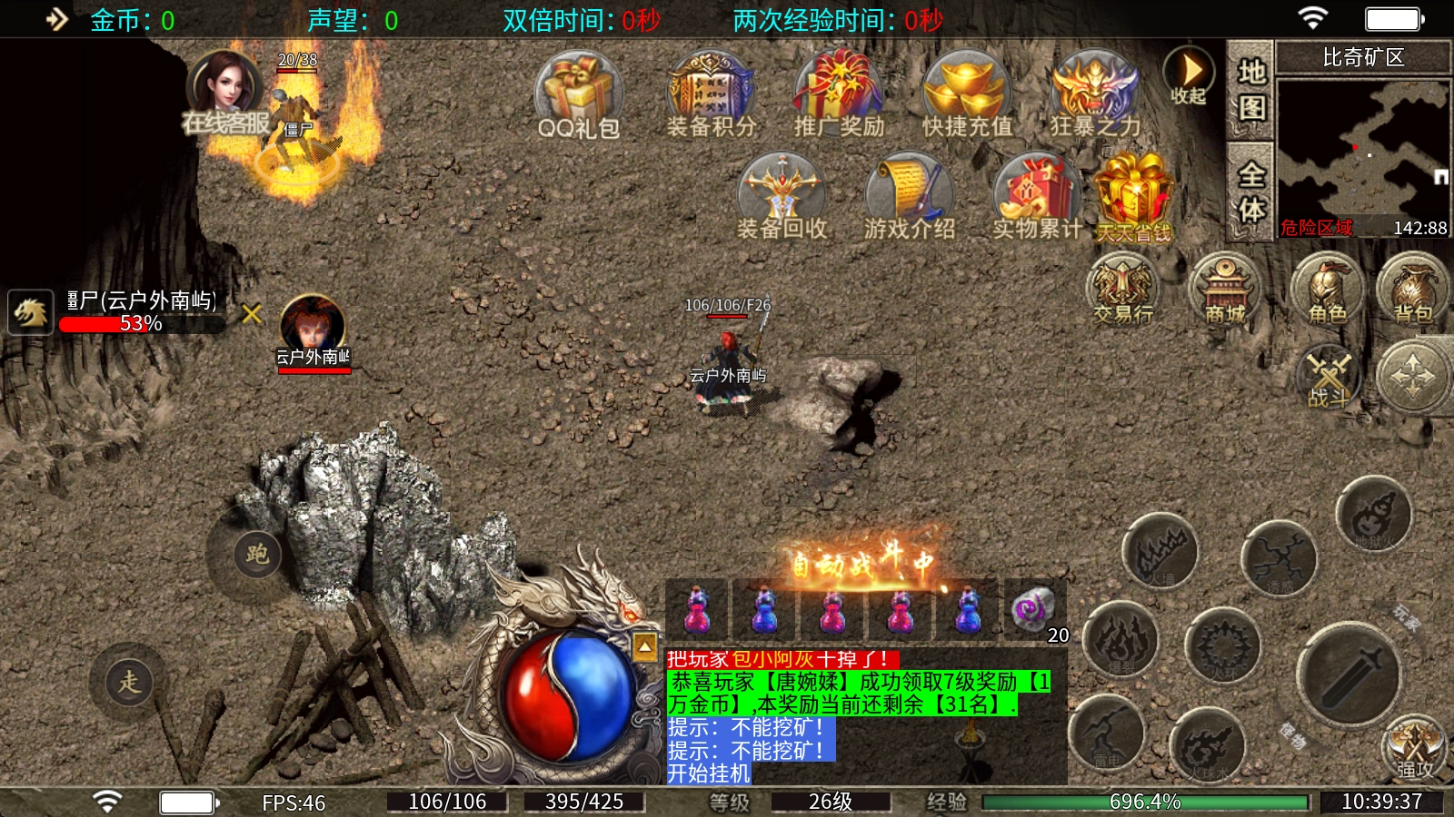 所有地图均可挂机,另外增加实物充值点怪物爆。
