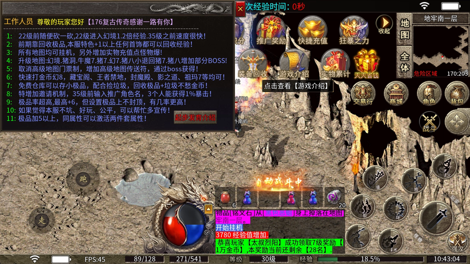 游戏前期主要依靠回收极品装备来积累资源,本服务器的特色机制是:所有+1及以上的首饰都能通过回收兑换成经验值。