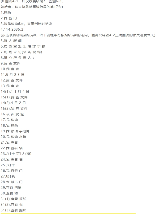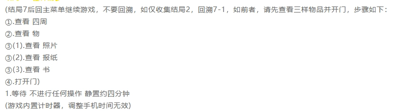 结局10:在病房流程里,只要查看完三样物品就会直接进入该结局,之后不会再出现其他选项。