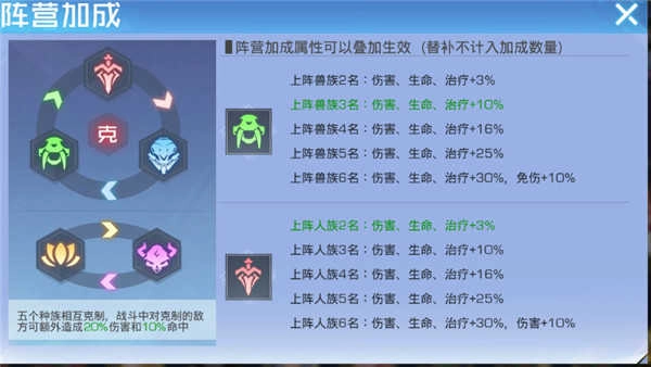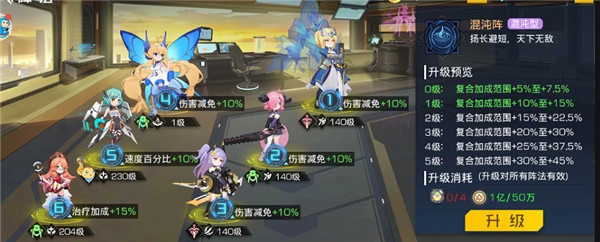 混沌阵是游戏里首个能为不同站位提供各异增益效果的阵法,其中一到四号位的增益均为基础的伤害减免,五号位可获得速度百分比加成,六号位则能得到治疗加成。