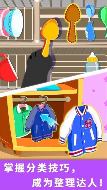 宝宝爱打扫是一款专为小朋友打造的早教小游戏,操作十分简单,很适合幼儿与学龄前儿童。孩子们只需通过点击、拖拽这类简单的手指动作,就能完成扫地、擦桌子、整理玩具等各类清洁任务,在游戏过程中学会做家务。
