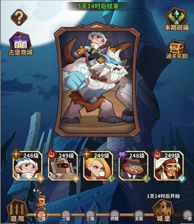幽灵古堡包含庭院、城堡和地牢三个场景,每个场景设有5个关卡。