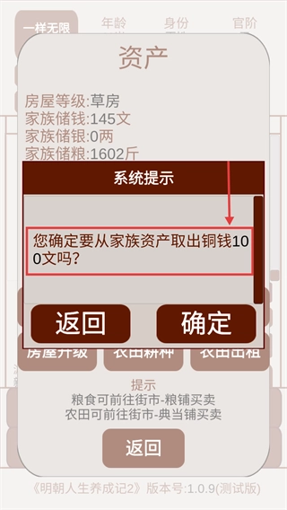 当系统提示提取铜钱时,请务必谨慎点击【确定】按钮,以防因误操作对家族资产储备造成不良影响。