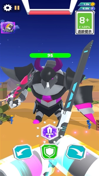 格斗过程中,金属碰撞的铿锵声、武器发射的爆裂声与场景音效相互交织,共同营造出紧张刺激的战场氛围,让人清晰感受到机甲受击瞬间的强烈冲击感。