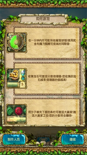蒙特祖玛的宝藏3手机版是一款十分出色的消除类游戏。游戏中,当三个及以上相同颜色的彩石连成一线时,便能触发快速消除效果。种类丰富的道具可为玩家助力,帮助突破各类难关;不同关卡设置了各异的难度,让玩家开启一场紧张刺激的遗迹探索冒险。 该作的核心玩法与前两部保持一致——通过交换彩石位置,使3个或更多同色彩石相连即可完成消除。不过,它在通关规则上做出了调整:不再以收集全部宝石为目标,而是要求玩家在一分钟内尽可能获取高分;收集宝石可激活分数倍增器,收集的宝石数量越多,倍增器的数值就越高,只有达到规定分数才能顺利通关。