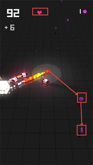 3、极简风格的游戏画面清晰明了,剔除了冗余的视觉元素,使玩家能够专注于赛道和敌人的动态,其核心玩法既具备休闲趣味,又不失速度带来的刺激感。