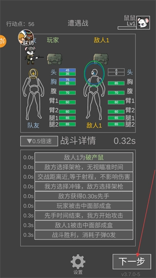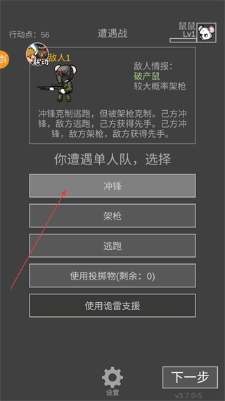 3、前往下一个物资点的途中会触发遭遇战,届时点击下方选项来选择战斗方式。