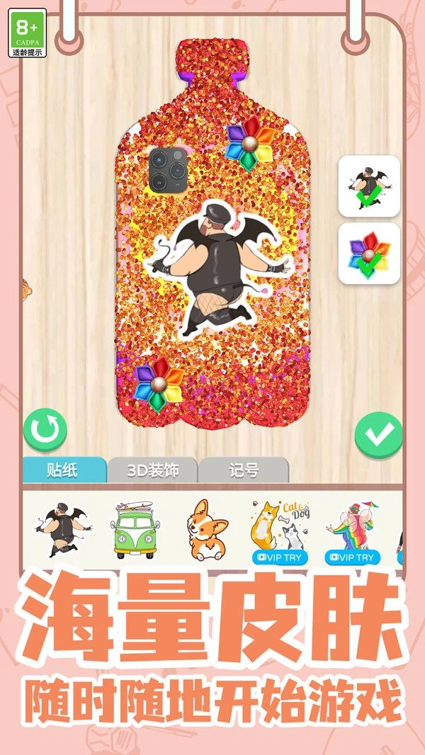 3、拥有海量装饰素材可供搭配,涵盖贴纸、3D装饰等多种类型,能够依据设计风格灵活挑选运用,为手机壳增添丰富细节,增强作品的独特性。