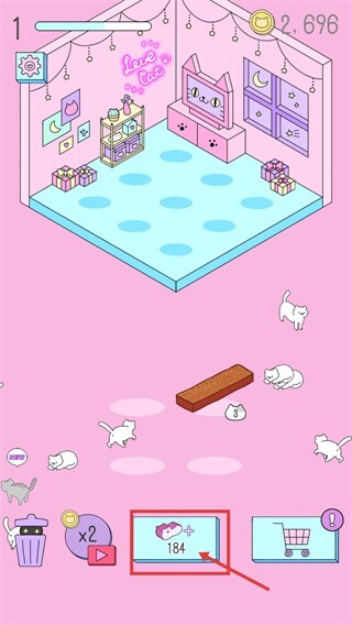 不断摆放家具,通过合成吸引大量猫咪。