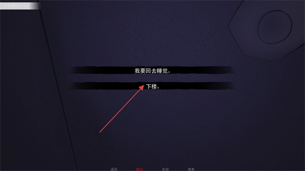 4、剧情结束后会出现选项,你可以选择“我要回去睡觉”或“下楼”来决定后续的发展方向,也可以点击“跳过”按钮来加快流程进度。