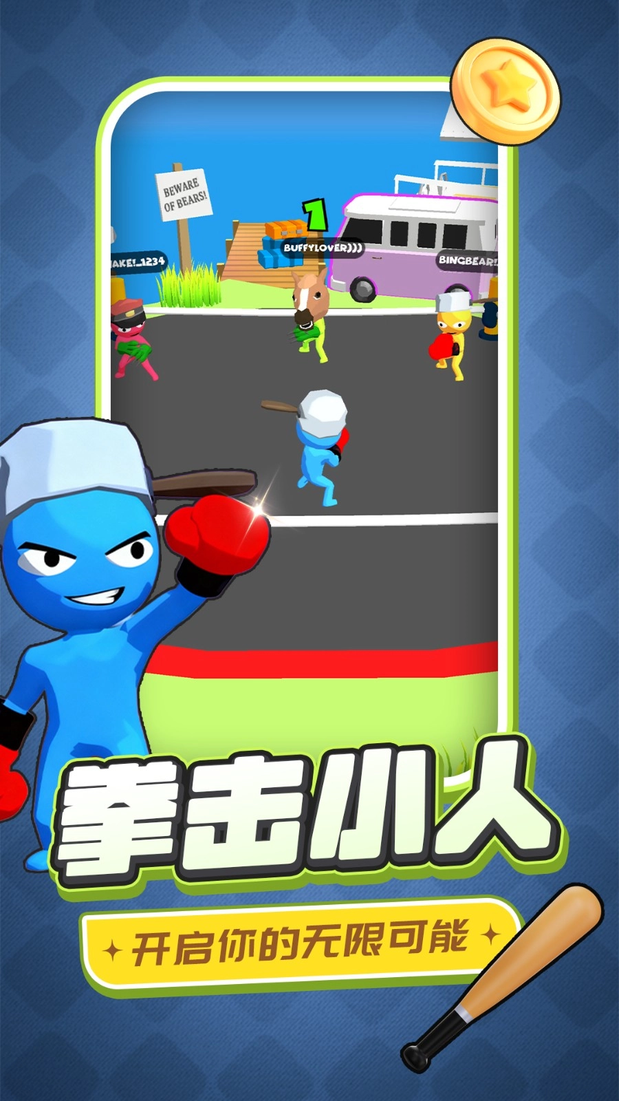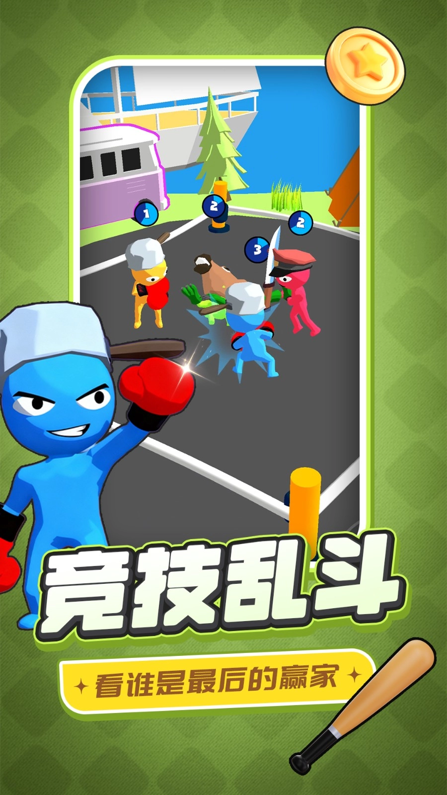 2、控制角色在擂台中移动,主动向其他角色发起攻击。场景里会随机掉落武器,拾取武器后能提升攻击力,更容易击败对手。