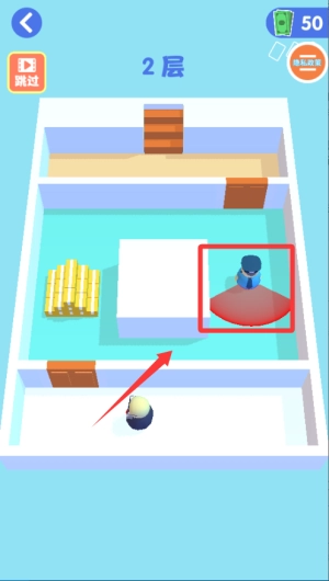 1、核心的躲避玩法机制是通过滑动操作来控制角色移动,以此避开守卫的视线范围。一旦被守卫发现,就会触发一段搞笑动画,之后玩家需要从当前所在的楼层重新开始游戏。