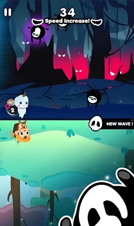 1、治愈系的视觉风格:运用小清新的画风,画面充满治愈感,人物造型Q萌可爱,就连怪物幽灵也设计得十分呆萌,以此营造出轻松温馨的氛围,帮助玩家缓解闯关时的紧张感。