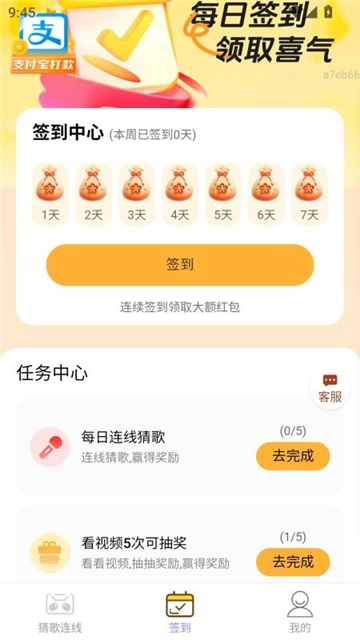 在喜运连连赚的猜歌连线页面里,你能够一边听歌一边进行连线答题。