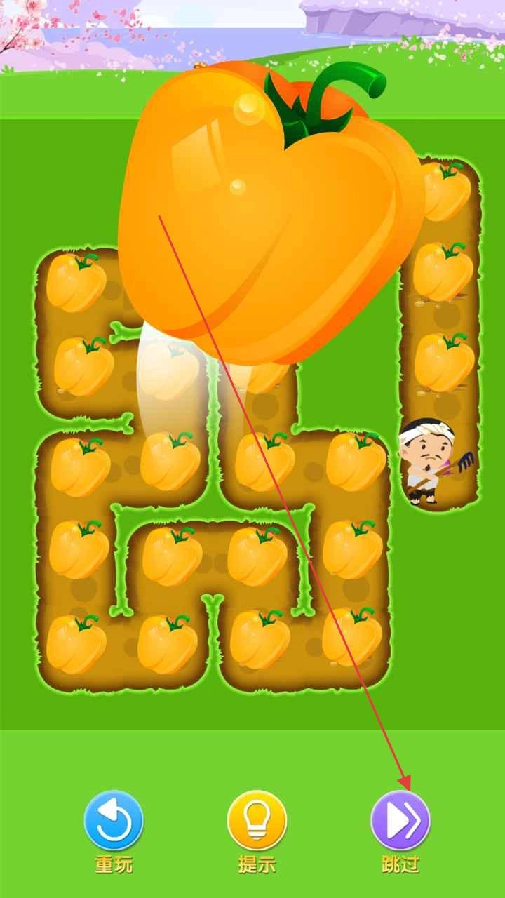 1、在萝卜关卡中,你需要操控农民角色,依照箭头指示的路径规划行进路线,在收集萝卜的同时避开各类障碍,以此完成该关卡。