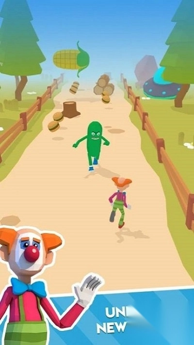 1、无尽逃亡模式:在没有终点的田园小路上一直奔跑,挑战最长的生存时长和最高分数,借助积累分数来解锁新角色与场景,感受极限跑酷带来的刺激。