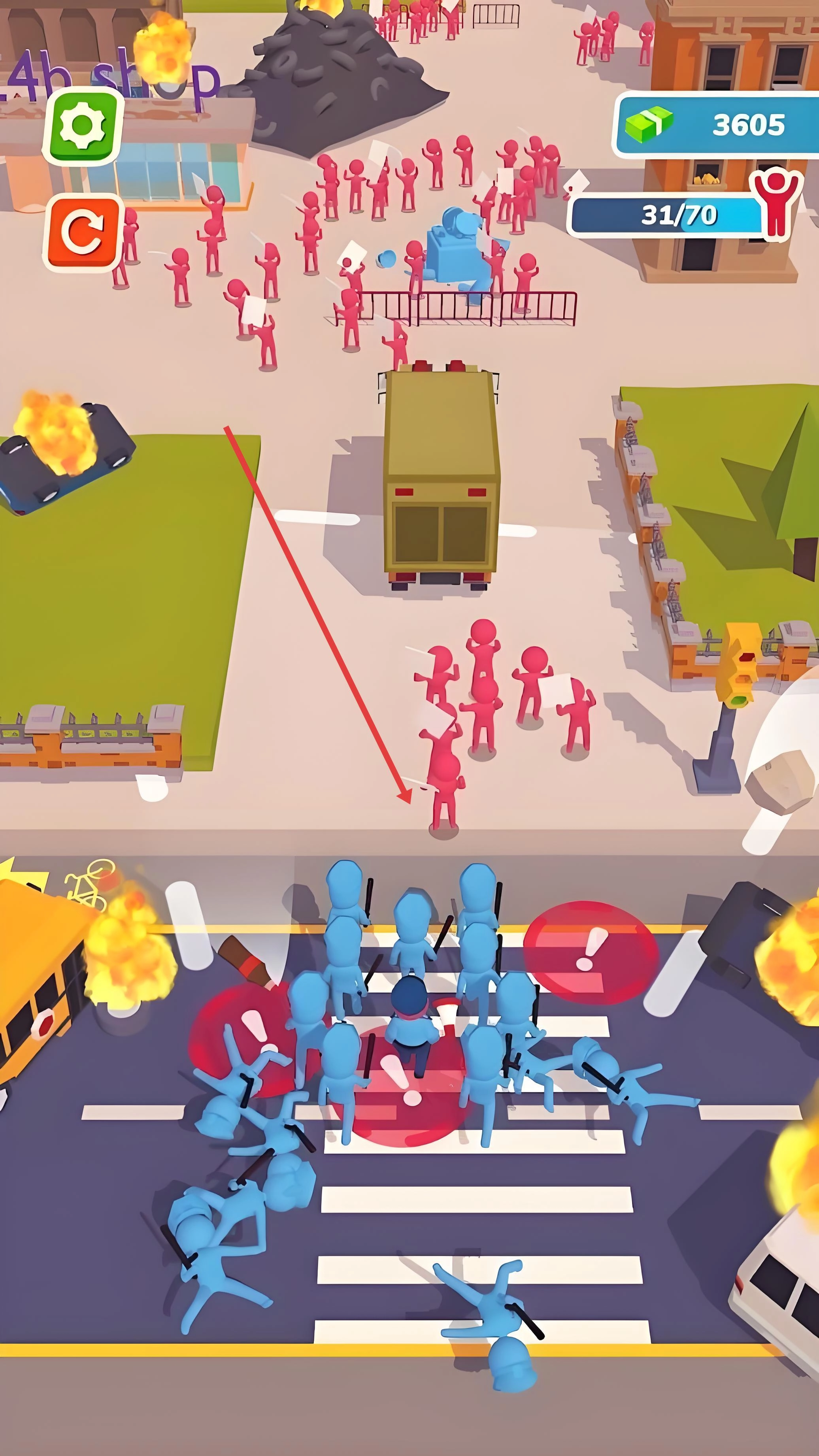 2、限时挑战机制:每一关都设有严格的倒计时限制,玩家需在规定时间内召集到指定数量的人群,若能在限时内顺利完成该任务,即可触发“暴走模式”。