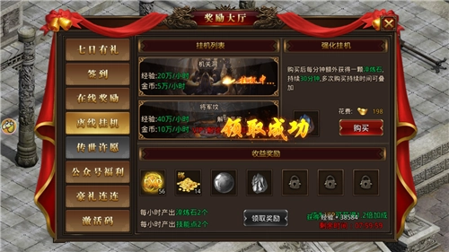 2.上线就能领取丰厚好礼,涵盖武器、神装与极品神兽。