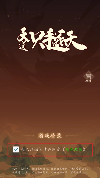 游戏需要确认用户们的个人隐私政策,同意继续游戏。