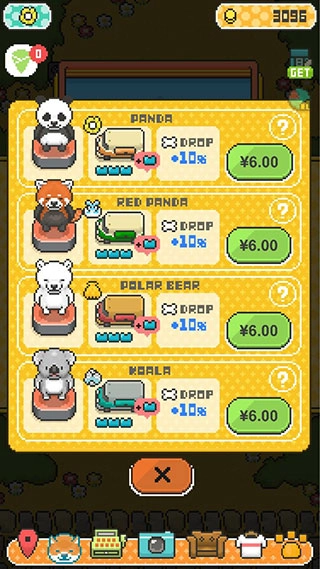 这游戏的内购设计挺有意思,唯一需要花钱的地方是角色,但想靠氪金加速收集进度根本行不通。金币能用来买新的狗狗当店员,可解锁其他动物就得花真金白银了。在这个以狗狗为主角的经营游戏里,唯一的内购项居然不是狗狗,而是那些其他动物。解锁这些动物角色,还能提升可丽饼店的店员数量上限,以及增加小游戏里能拿到的升级道具。
