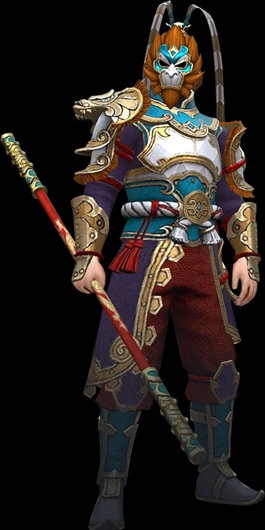 节日国王套装是一套以法杖为主要武器的王朝风格装备,它是仿照美猴王的经典装备全新打造而成的。在农历新年期间,你将有机会与美猴王以及他那群活泼的猴子猴孙们展开一场精彩的对战。