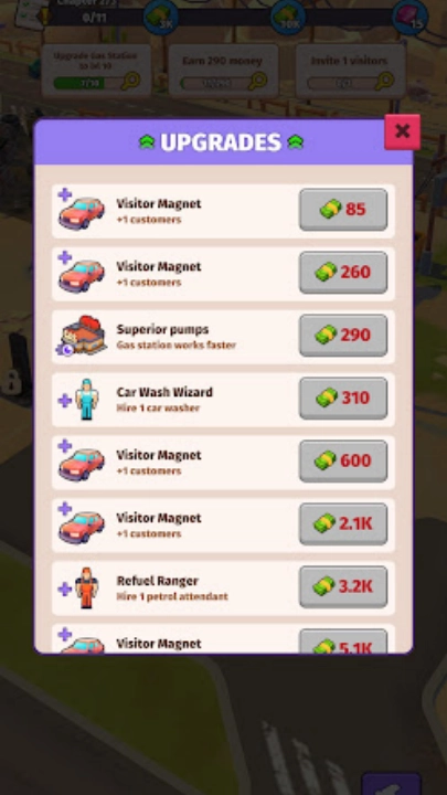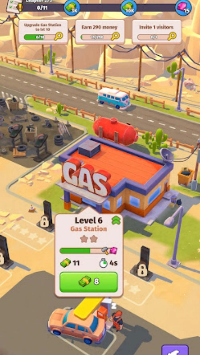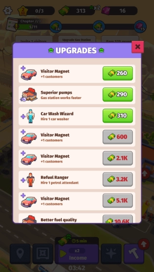 5、升级你的加油站来解锁更多的内容。