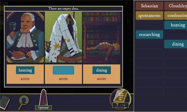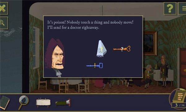 复古沉浸感上,像素场景细节饱满,搭配悬疑音效,18世纪的氛围十分浓厚,每个凝固的场景中都藏有关键信息。