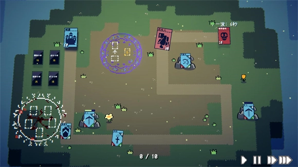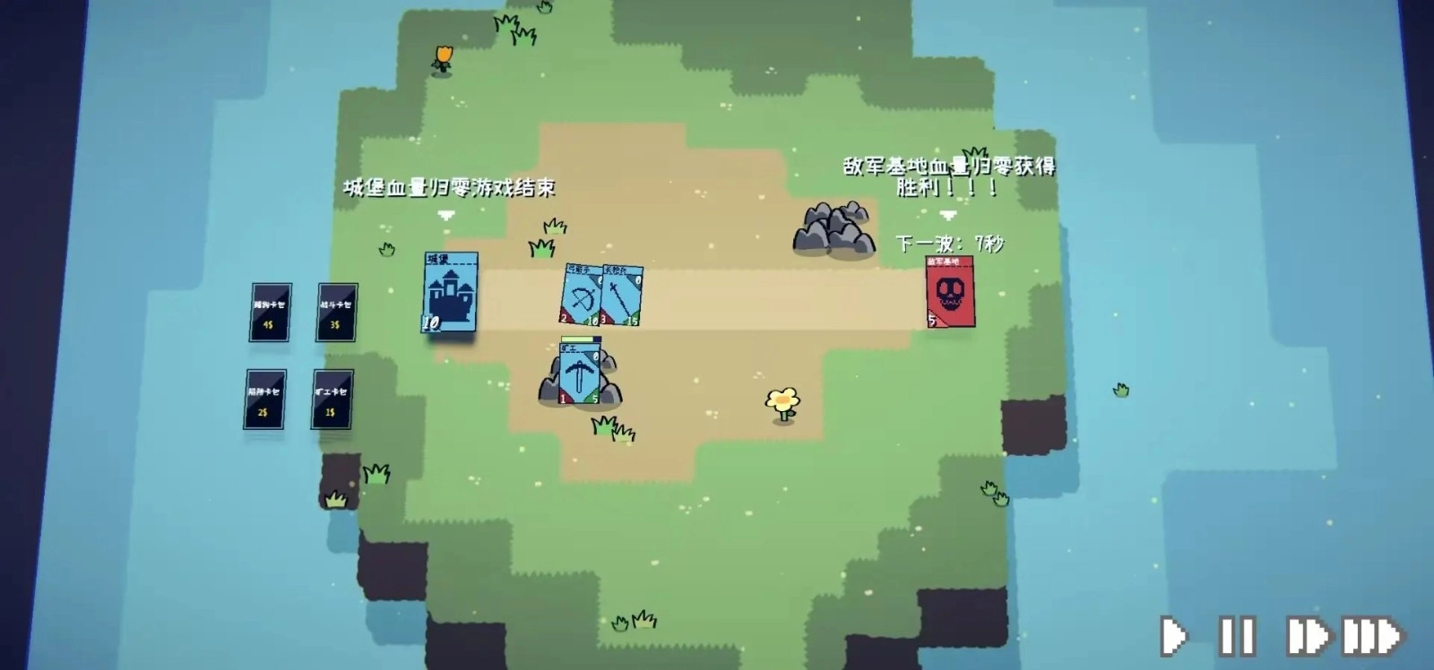 把手中的兵种卡片放在城堡所在的位置,就能召唤出对应的士兵,只要把敌方的基地打垮,就能赢得这场战斗的胜利。
