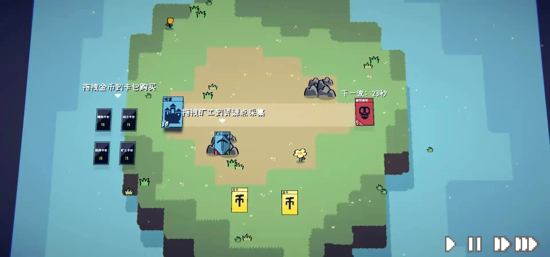 将矿工卡牌放置在矿场来获得金币卡牌。