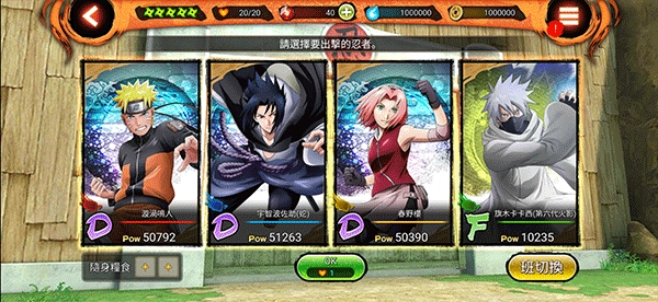 挑选原作里的游戏角色,与它们一同修习超强的忍术;你得守护好自己的堡垒,不管是堡垒的各类设施,还是角色自身的属性,都得玩家耐心去培养。