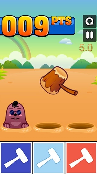 当地鼠从地面冒出来时,得快速且不间断地点击下方按钮,尽可能多敲打;不过一旦地鼠钻回地下,就请立刻停止敲打,毕竟敲空了是会被扣分的。