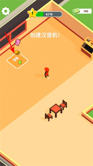 点击创建汉堡机的提示区域,搭建汉堡制作设备,启动汉堡的制作流程,满足顾客需求,助力店铺发展。