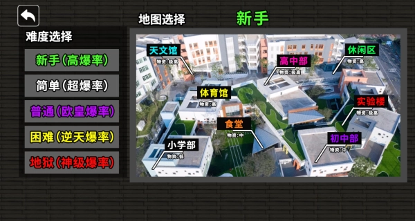 提供多张地图与难度选项,新手建议从高中部地图开始熟悉玩法。