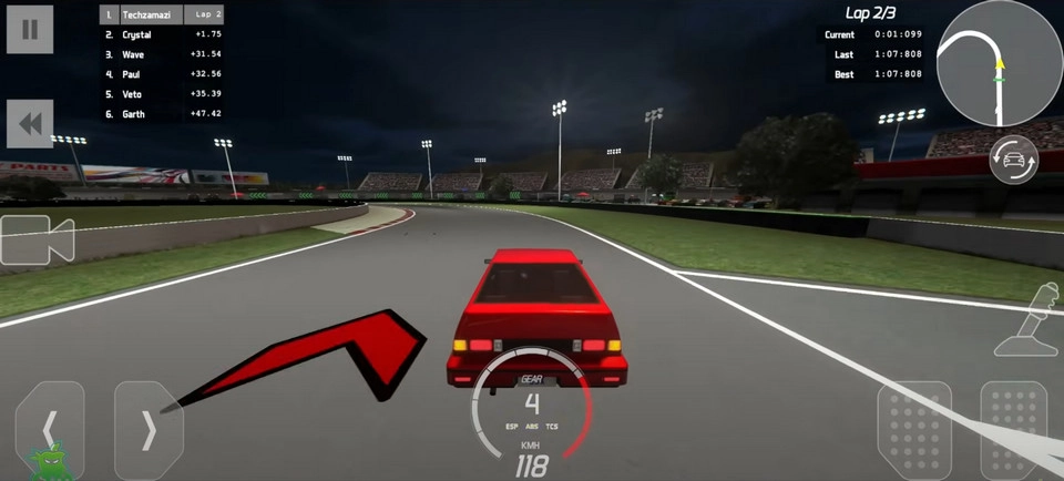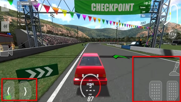 左下角负责控制赛车左右移动,右下角的按钮则对应油门和刹车,你得精准把控赛车的速度与方向,才能顺利完成任务。