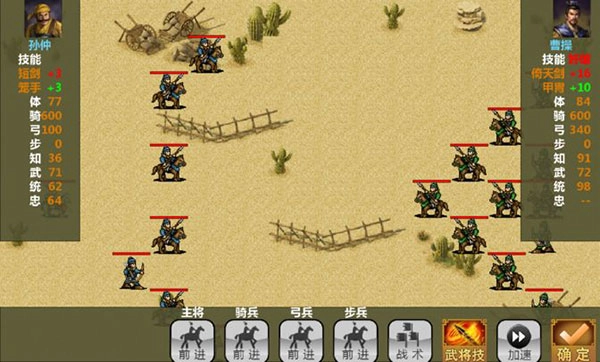 战斗采用回合制模式,武将能够运用【牵制、攻击、舍命一击】等战术手段,在战斗过程中需要考量双方在武力、装备等属性方面存在的差异。