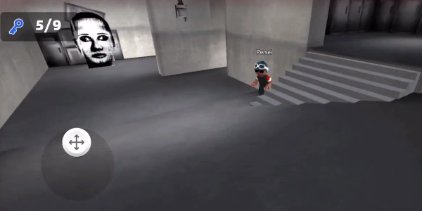 游戏画面内的操作布局如图所示,左边用于控制角色移动,右边负责控制角色方向。玩家需要与电脑角色协作,尽快寻找到五把钥匙,打开门后实现逃脱。