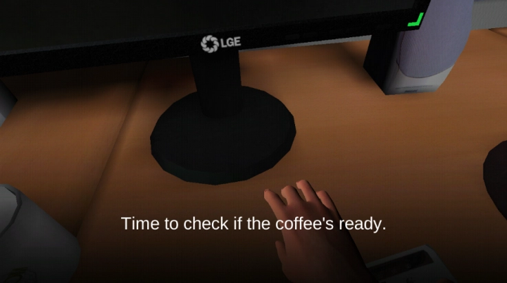 第一种结局是玩家察觉到杀人犯在跟踪自己后,悄悄从咖啡店后门溜走,可没跑出多远就被对方发现,最后遭其抓住,游戏随即结束。