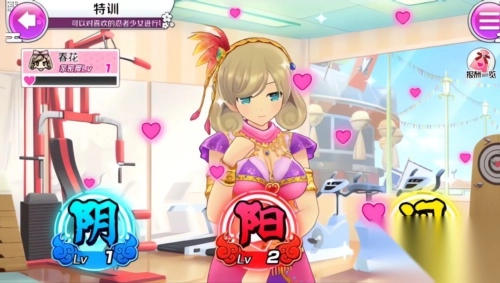 消耗不同颜色的体力进行特训,能够提升阴、阳、闪属性的等级,同时增加好感度以获取更多互动福利。