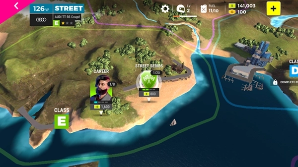 2、游戏内包含海量赛道,像阿马尔菲海岸、北欧国家、西海岸等都在其中。
