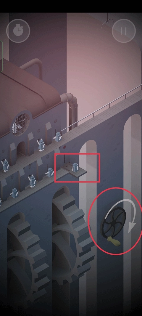 3、游戏的操作方式十分简易:按住屏幕保持不动,或是转动机关的过程中,机器人都会处于静止状态;轻点一下机器人,能让它改变行进方向;而转动机关,则可以对路径进行调整。