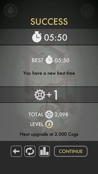 1、游戏采用闯关模式推进,具体关卡总数目前尚不明确。关卡表现的评判依据为通关时长,用时越短,所能获取的齿轮数量就越多。