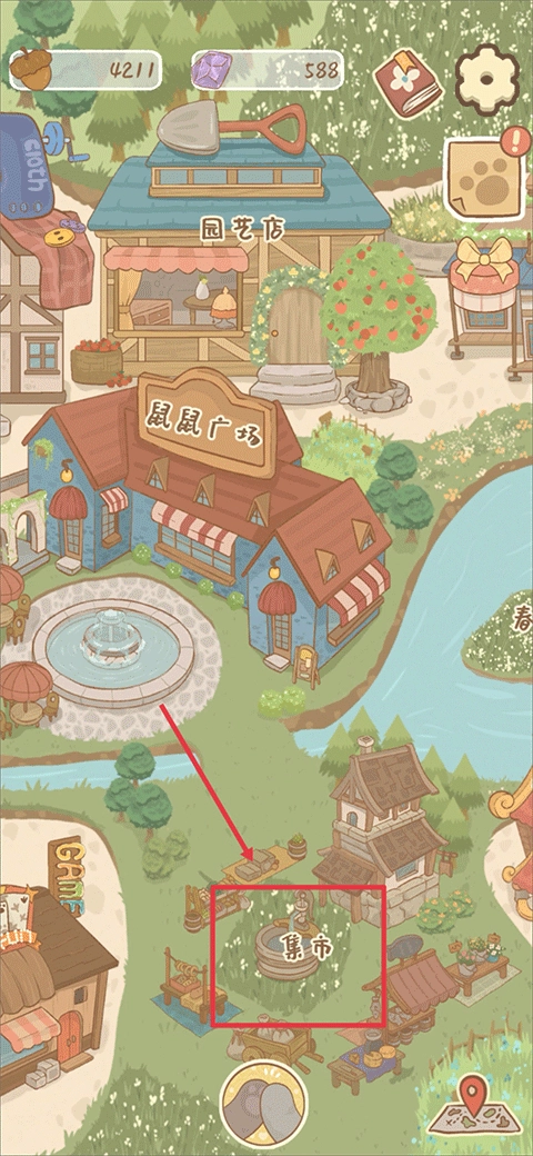 5、便当购买后返回小镇,找到并点击进入集市