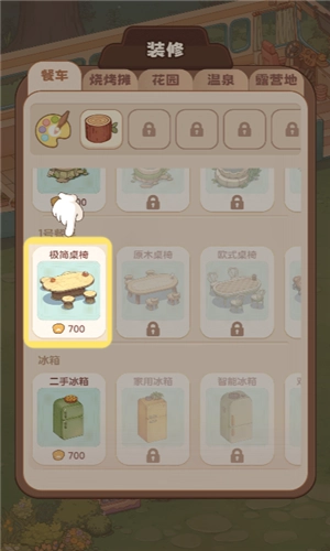 解锁餐车、烧烤摊、花园等露营地场景,体验不同经营环境。